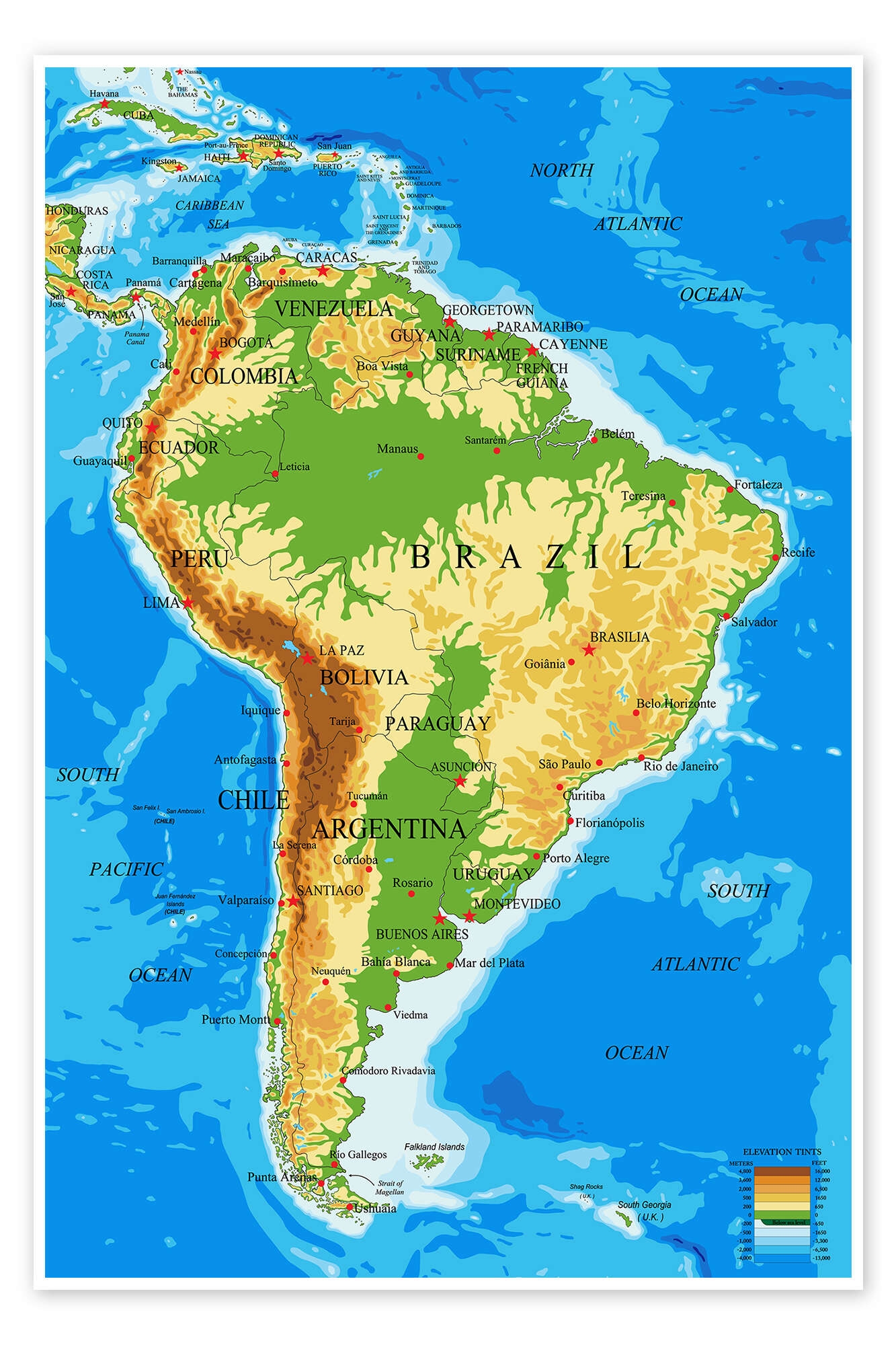 Topographic Map Of South America Print By Editors Choice Posterlounge