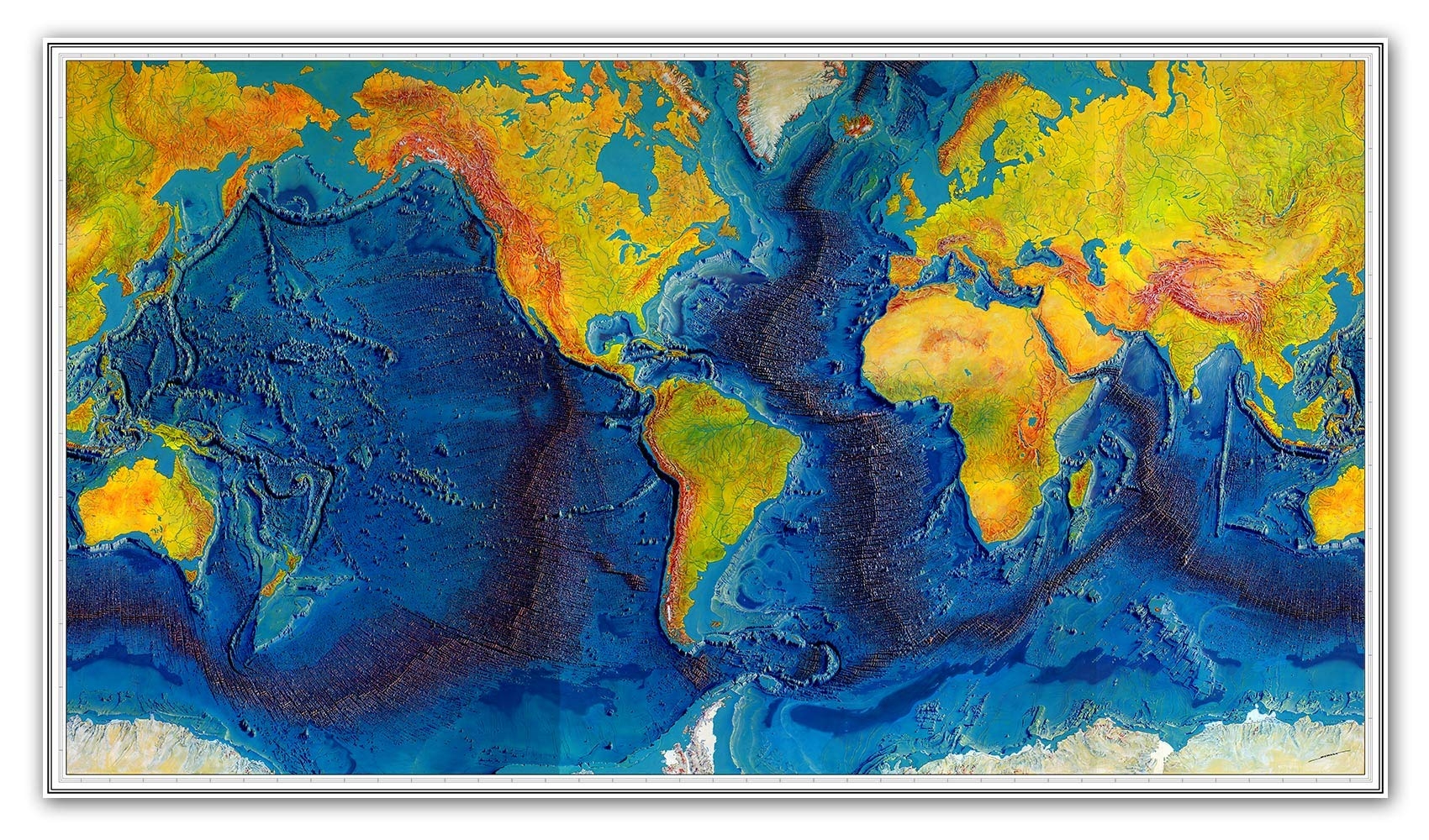 Amazon World Ocean Floor Topographic Map Educational Art Print Poster Vintage Wall Decor 24 X 42 Inches Office Products