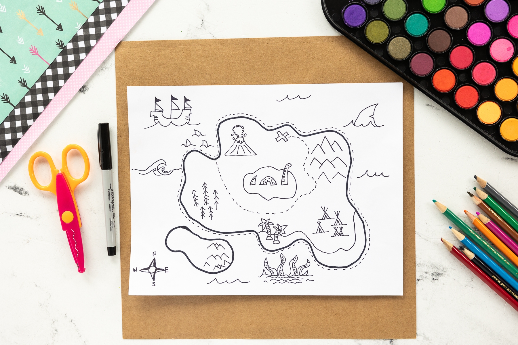 To get started, simply download and print out the treasure map template. You can then let your little one’s creativity run wild as they decorate the map with markers, crayons, stickers, or any other art supplies they prefer.
