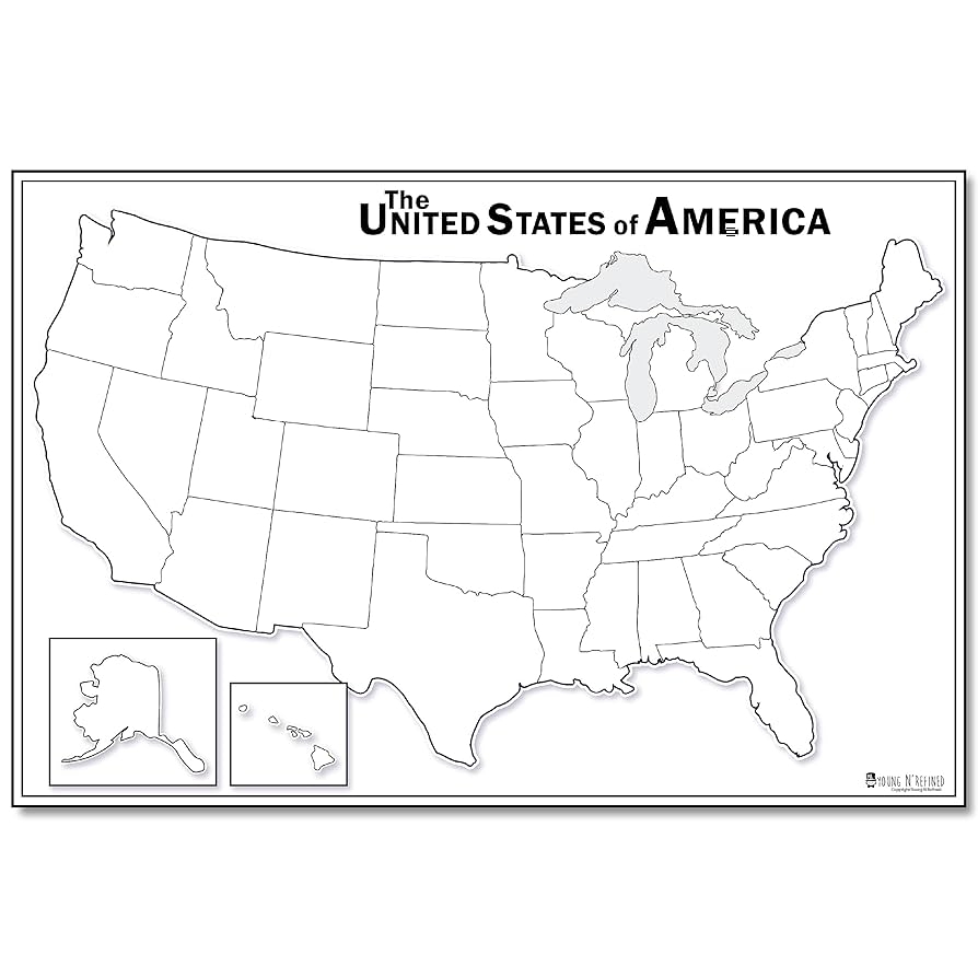 Amazon Blank Map Of USA Dry Erase 24x36 LAMINATED 50 States Large Poster Young N Refined Office Products