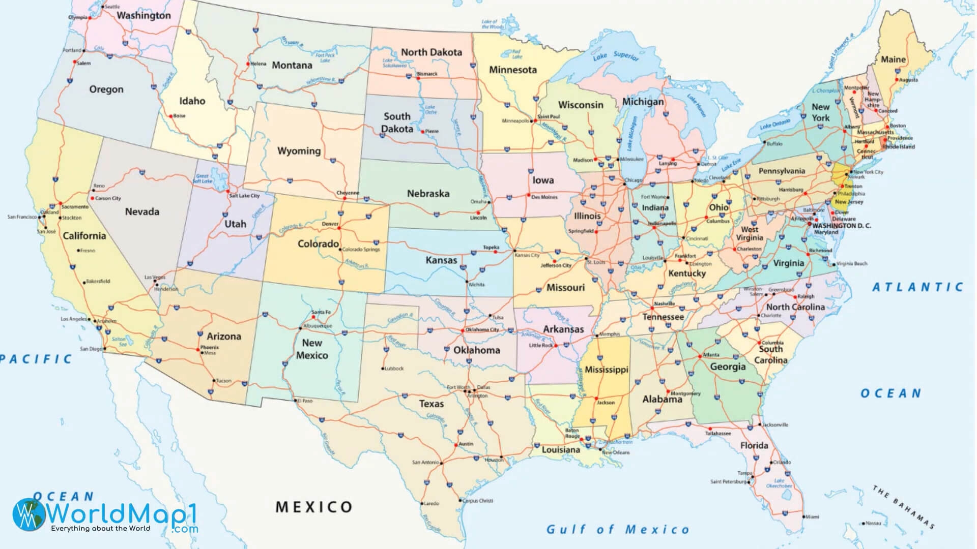 US Interstate Highway Map With Major Cities