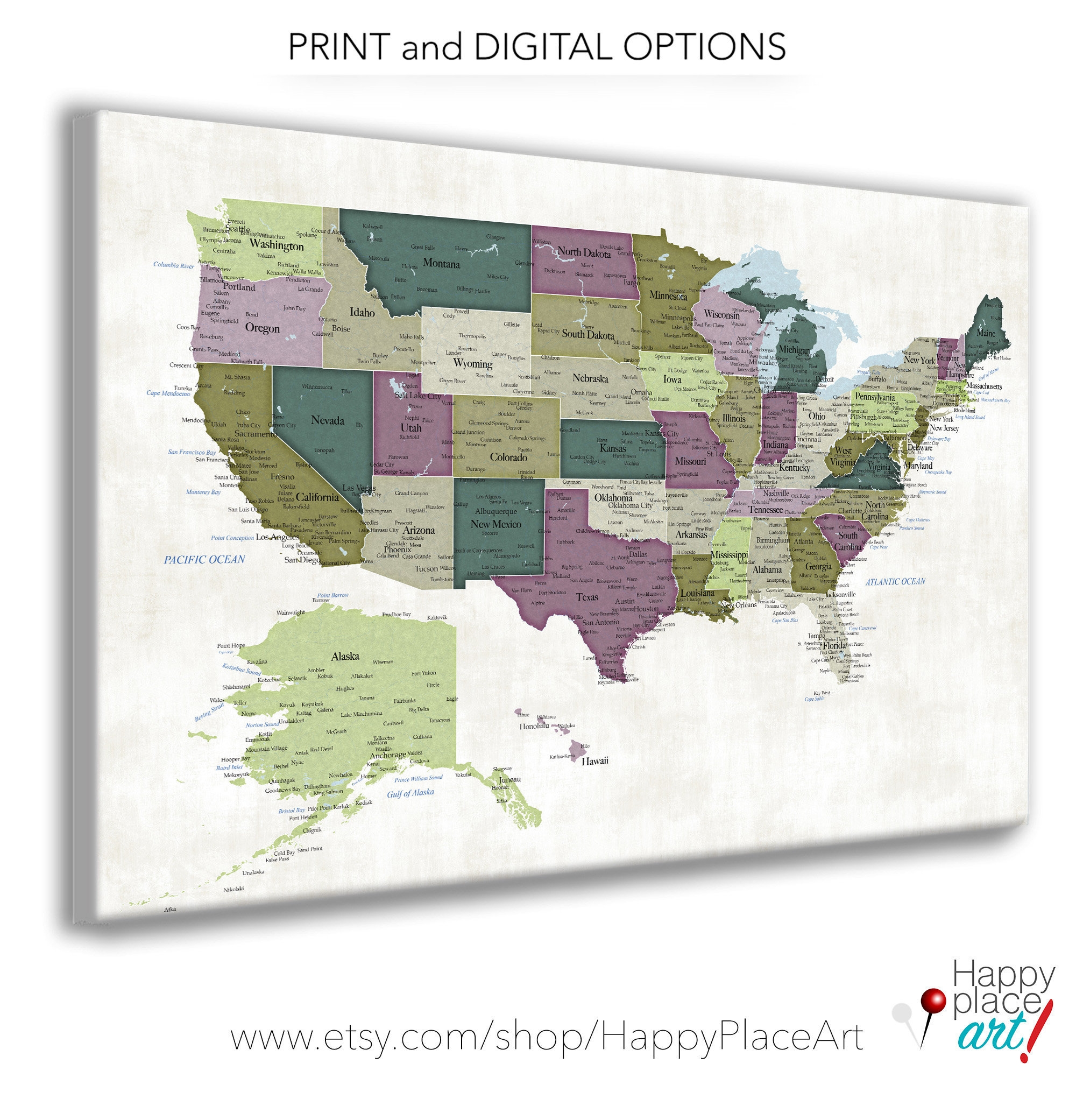 Map Of USA With States And Cities US Push Pin Map With Poster Or Canvas Map Options Mark Vacation Travel Locations On A Large Wall Map