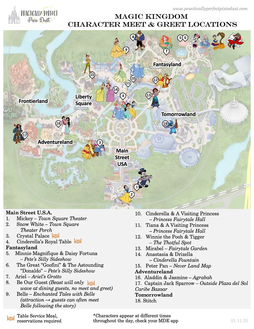 Disney World Character Guide Free Printable Location Cheat Sheets 2025