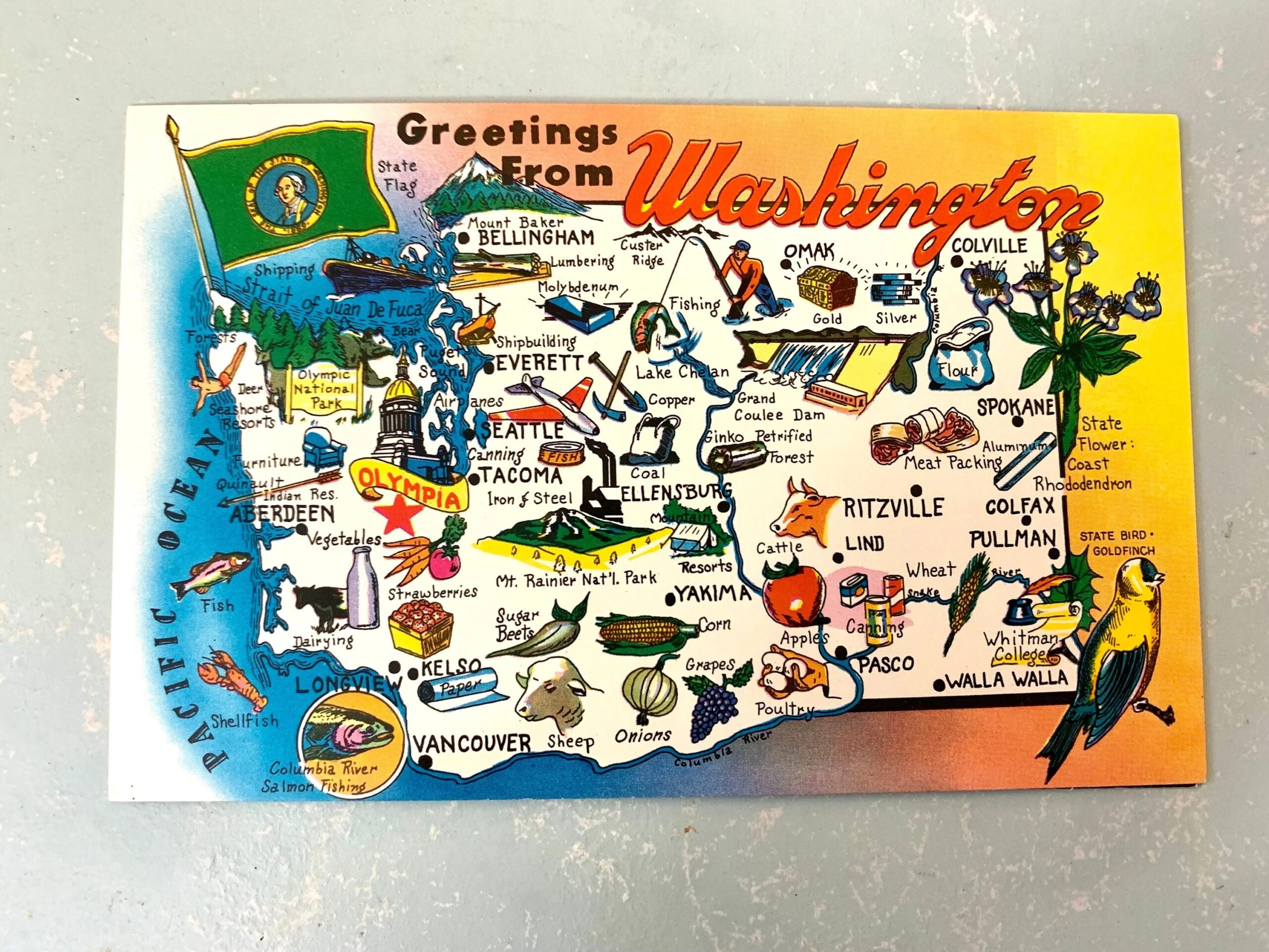 Vintage Postcard WA Map Greetings From Washington State Etsy