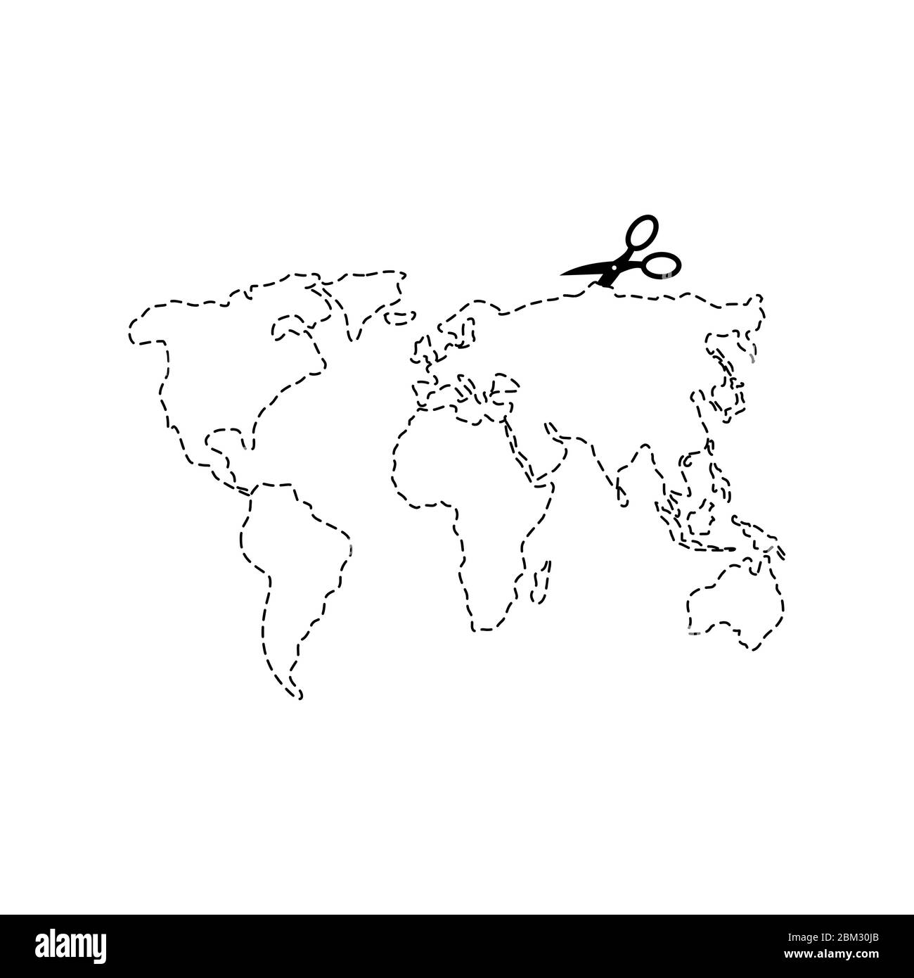 Scissors Cut Map World Template Dashed Line Continents Of Planet Earth Vector Illustration Stock Vector Image Art Alamy