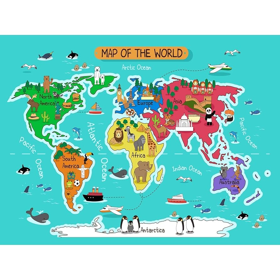 Amazon World Map With Landmarks And Animals Art Print Poster Wall Decor Posters Prints